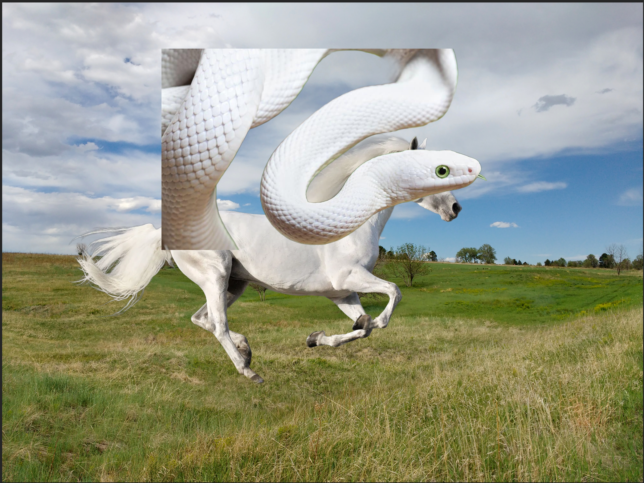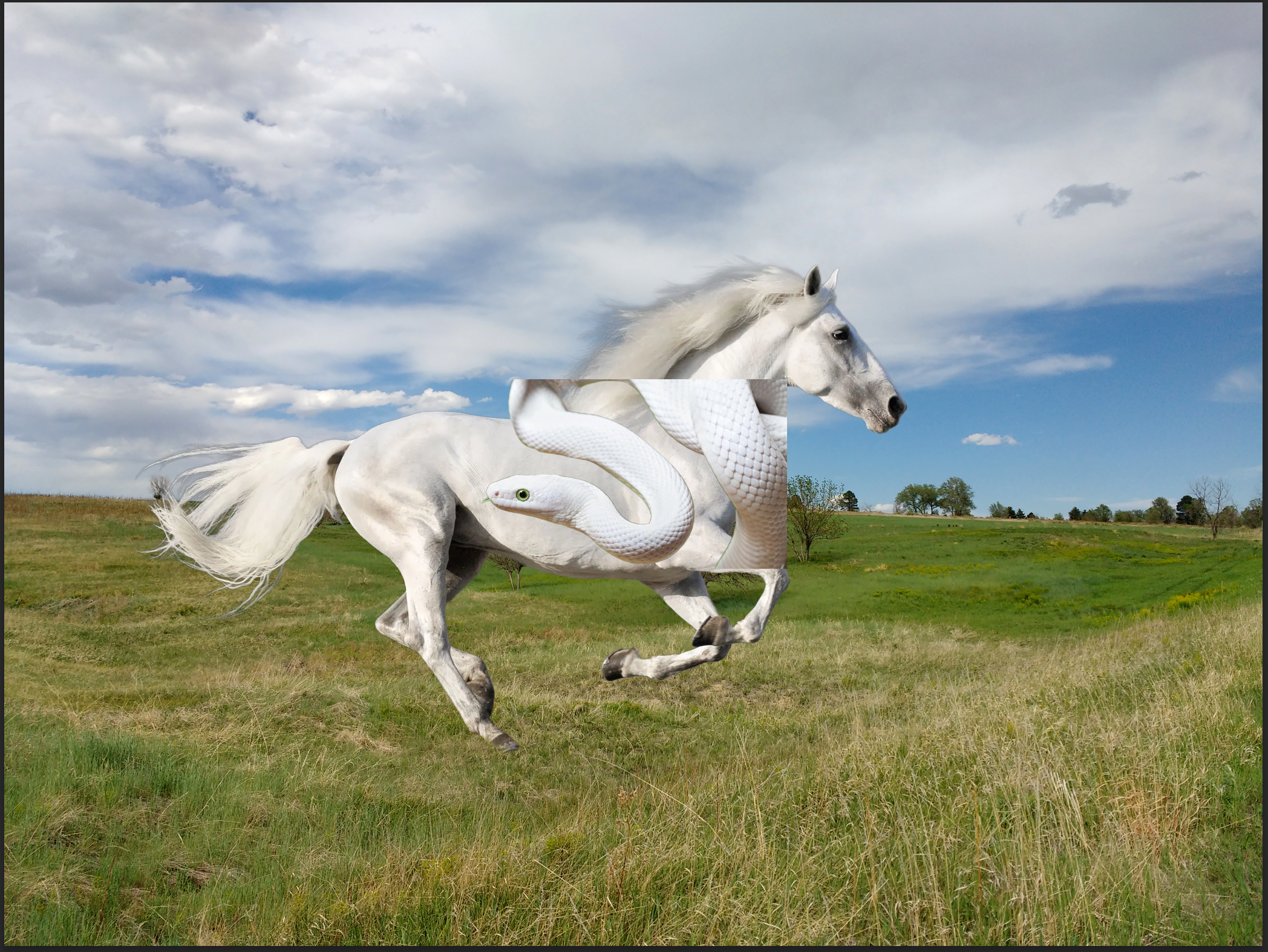 You will need at least three starting images: two animals and a background. It usually works better if the animals are in profile (side view).